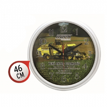 Metal Çerçeve Yuvarlak Bombe Cam Özel Gölgeli Duvar Saati 35cm (Dijital)